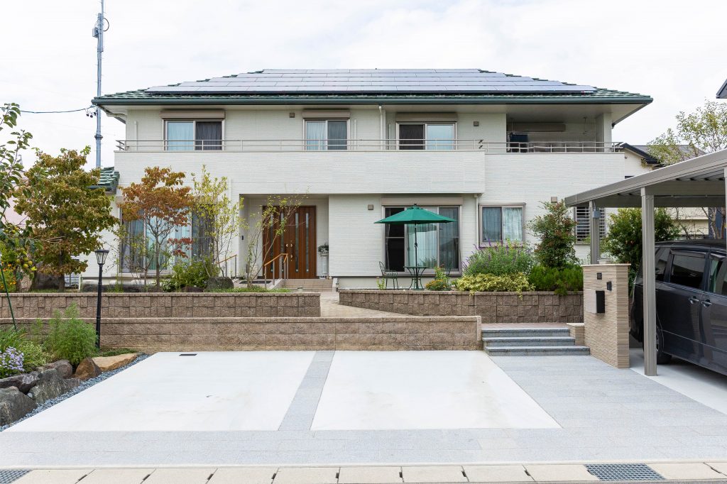 畑に家を建て、15年が経ちました。そろそろ、おうちの方も塗装をしなければいけないなという時期にきていました。そんなとき、新築を建てたときから道路ができると聞いていた目の前の公道ができました。家の前の道路の整備が完了したので、将来の準備も含めて、下水の取り出し位置の変更や駐車場の整備、長年仮の状態だった門塀など、道路ができたことをきっかけにお願いすることにしました。