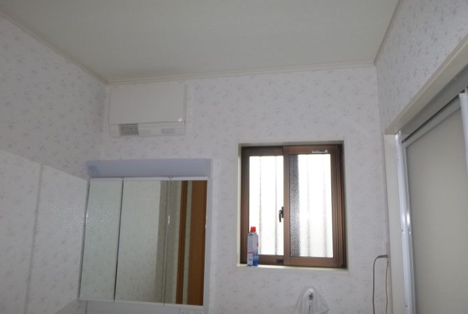 洗面室に暖房設備を設置し、ヒートショック対策。 サッシも、ガラスを複層ガラスに交換し、断熱性向上。