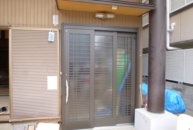 昔ながらの引違戸だった玄関扉を袖付2枚引戸に交換。 開口幅が増え、大きな荷物も楽々通過が可能。